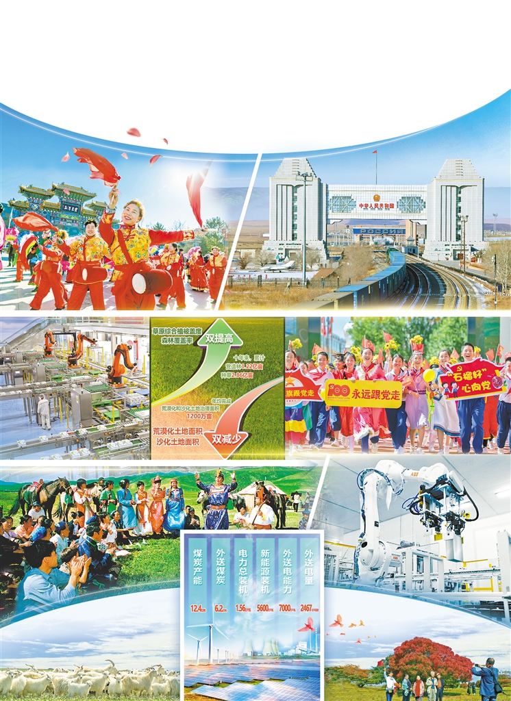 温暖千座城、点亮万家灯,国家重要能源和战略资源基地尽显担当。创造了煤炭产能、电力总装机、新能源装机、外送煤炭、外送电能力、外送电量等六项全国第一。2021年,内蒙古承担了18个省区市5300万吨煤炭保供任务。