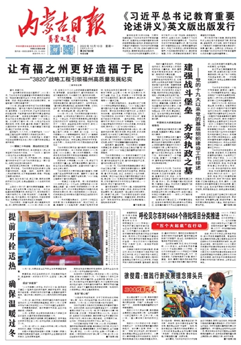 内蒙古日报 一版要闻 01 2022-10-101 2022年10月10日 星期一