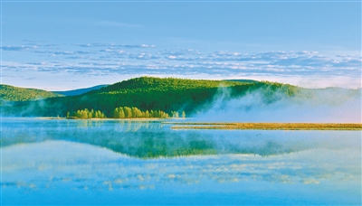 阿尔山杜鹃湖,碧水初醒,晨雾如纱,朦胧似幻。 文/图 德志纯