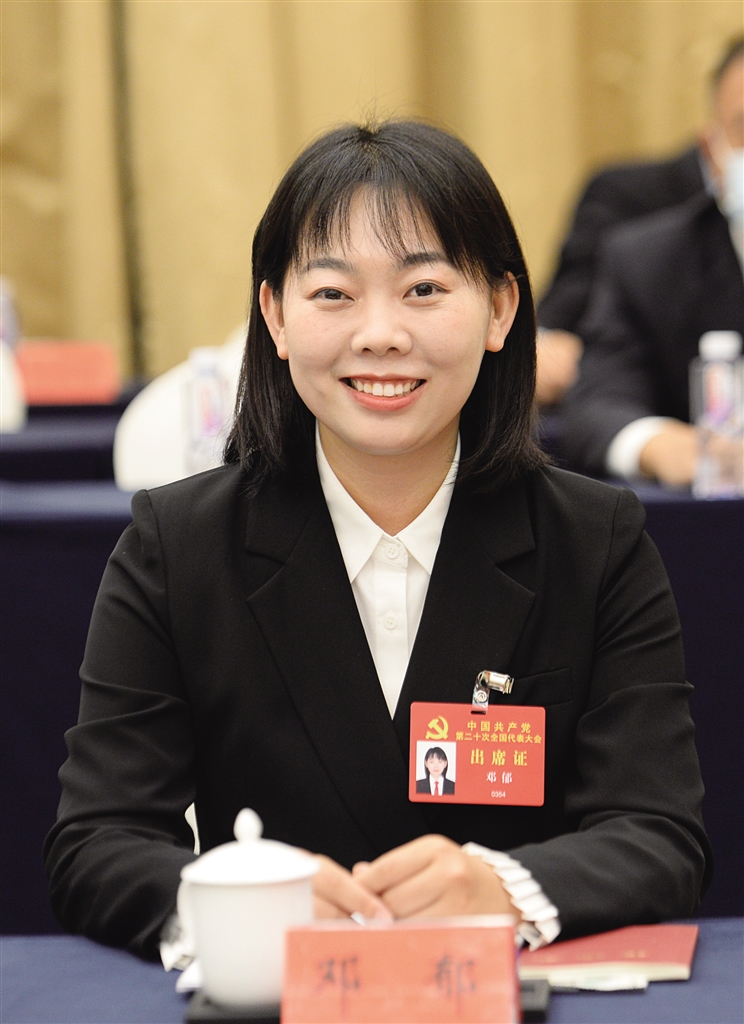 “现场聆听了习近平总书记所作的报告,让我备受鼓舞、倍感振奋。”参加完党的二十大开幕会后,邓郁代表仍难掩激动。总书记在报告中多次提到“人民”,突出了坚持以人民为中心的发展思想,体现了“人民至上”理念,这让她感触颇深。