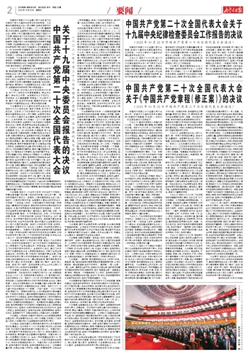 ~~~(二○二二年十月二十二日中国共产党第二十次全国代表大会通过)