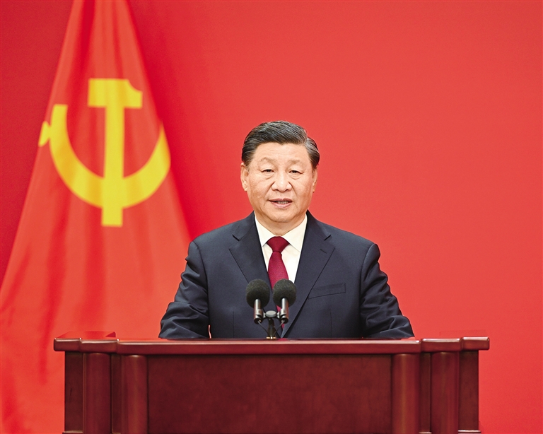 习近平指出,经过全党全国各族人民共同努力,我们如期全面建成小康社会、实现了第一个百年奋斗目标。现在,我们正意气风发迈上全面建设社会主义现代化国家新征程,向第二个百年奋斗目标进军,以中国式现代化全面推进中华民族伟大复兴。