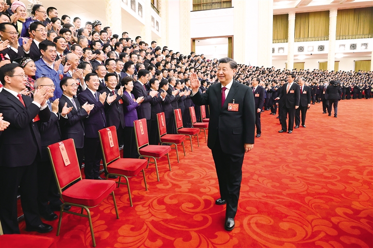 10月23日下午,中共中央总书记、国家主席、中央军委主席习近平等领导同志在北京人民大会堂亲切会见出席党的二十大代表、特邀代表和列席人员,并同大家合影留念。