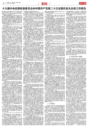 十九届中央纪律检查委员会向中国共产党第二十次全国代表大会的工作报告