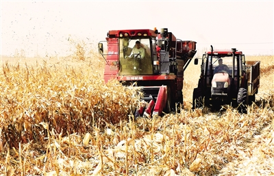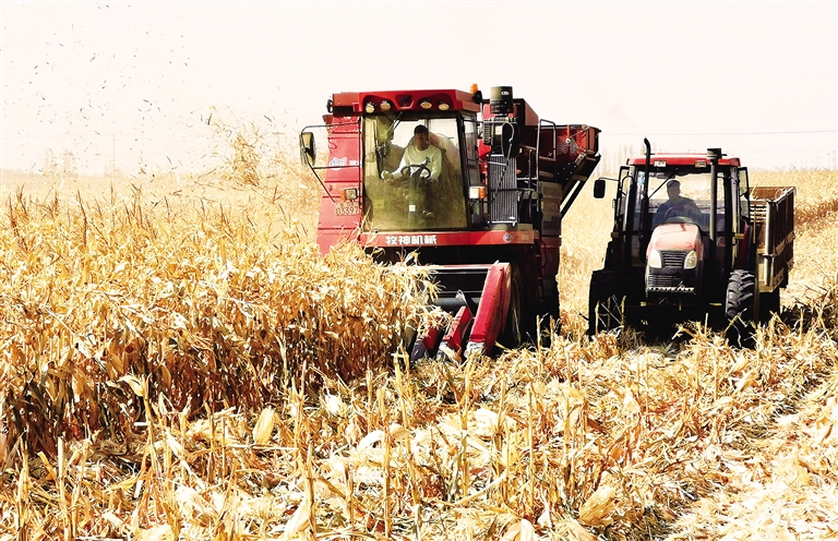 近日,在巴彦淖尔市磴口县沙金套海苏木温都尔毛道嘎查,收割机正在收割玉米。随着最后200亩庄稼收割完毕,该县全年粮食收割工作圆满收官。据统计,磴口县2022年共播种粮食作物73.7万亩,播种小麦2.91万亩,玉米62.1万亩,薯类5.6万亩,大豆1.7万亩,其他谷类1.13万亩。