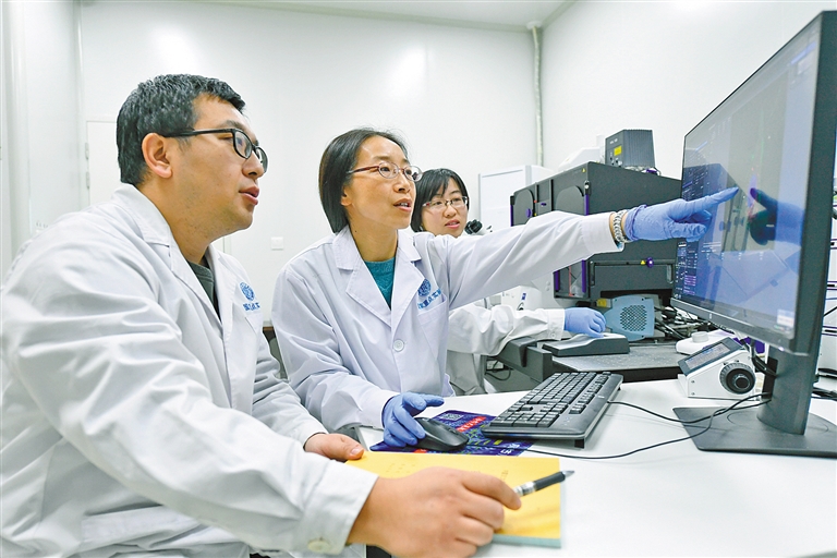 | 内蒙古大学生命科学院院长胡薇与同事们在内蒙古大学“省部共建草原家畜生殖调控与繁育国家重点实验室”工作。“十三五”以来,全区高校共获得科技投入经费57.11亿元,高校承担和参与各级各类科研项目6万余项,教育成为支撑地方科技与经济社会发展的重要力量。本报记者 王磊 摄 |