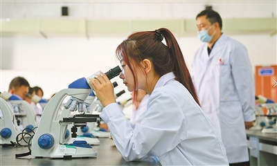 | 赤峰学院基础医学院的学生正在上组织学与胚胎学课程。十年来,内蒙古高校累计培养118万余名高校毕业生,教育的快速发展,为提升劳动力综合素质、深刻改变国家和民族的精神面貌发挥了重要作用。本报记者 孟和朝鲁 摄 |