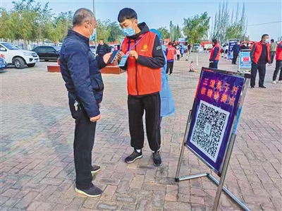 鄂尔多斯市鄂托克前旗各级党组织、广大党员干部,听令而动,投身疫情防控一线,用实际行动树立起全旗干部担当作为的形象。图为旗残联党员志愿者在包联村协助居民扫码、维持秩序。雷禄 摄