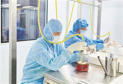 11月1日,内蒙古大溪生物科技有限公司的工作人员正在对成品血清进行罐装。该公司生产的血清制品是重要生物医药原辅材料,为疫苗生产企业提供原料保障。疫情期间,该公司及时调整工作重心向生产现场转移,充分发挥“党建+安全”结对共建的作用,筑牢安全生产防线,全力保障生产任务顺利完成。本报记者 王磊 通讯员 胡伟 摄