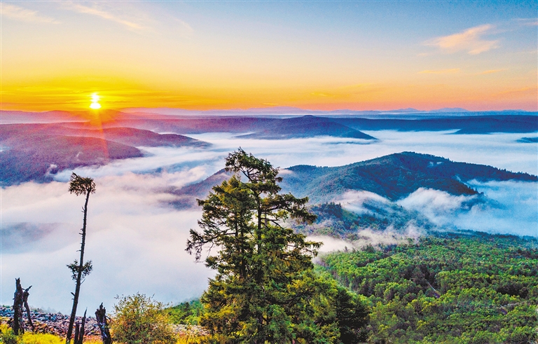 阿尔山白狼峰,日出苍山,云海茫茫,宛如仙境。 文/图 于振海