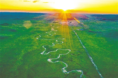 克什克腾旗白音查干苏木,朝阳灿灿,河水弯弯,炊烟袅袅,静谧祥和。 文/图 陈真