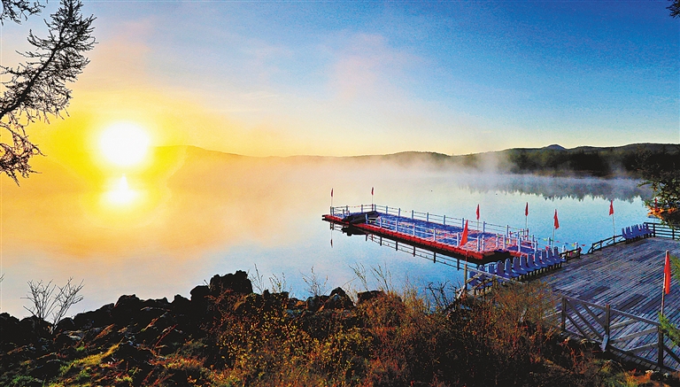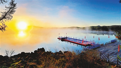 阿尔山杜鹃湖,旭日东升,云蒸霞蔚。 文/图 德志纯