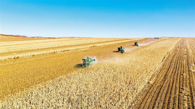 全国秋粮收获已接近尾声,当前秋粮正在集中上市,收购工作开局良好、进展顺利。在内蒙古,截至11月1日,全区粮食作物已收获进度98%以上,小麦、马铃薯、大豆、杂粮杂豆已收获完毕,水稻收获已基本完成,玉米收获也接近尾声。据自治区农牧厅消息,今年,内蒙古将粮食稳面积、提单产作为农业生产的重中之重。总结提炼生产技术模式,建设主要作物高产示范区,提高粮食作物单产,带动粮食增产增收。年初,内蒙古对提升单产做了专门安排部署,利用优质高效增粮和绿色高质高效项目,在全区12个盟市65个旗县开展玉米、大豆、马铃薯等主要作物高产示范,共建设130个万亩示范片、690个千亩示范方和240个百亩高产示范田。全区农牧系统认真落实自治区党委、政府安排部署,坚持统筹疫情防控和秋收“两不误”,提早安排部署,实施秋收日调度,加强收获指导服务,联合自治区卫健委印发了《统筹新冠肺炎疫情防控保障秋收及农牧业生产工作导则》,在全区组建了第一批245个“白名单”农机应急作业服务队,针对疫情采取管控措施地区农户秋收作业需要,在县域内开展“点对点”服务。设立秋收保障热线,努力打通堵点卡点,保障了全区各地秋收有序进行。种好“塞外粮”、丰盛“中国碗”。内蒙古有1.72亿亩耕地,是全国5个耕地保有量过亿亩的省区之一。粮食产量连续4年突破700亿斤、排全国第六位,每年有一半以上的粮食调往区外、供应全国,2021年外调粮食全国第四。计划到2025年全区粮食综合生产能力稳定在750亿斤以上。“确保中国人的饭碗牢牢端在自己手中”,内蒙古着力保障国家粮食安全,往“中国饭碗”里多装粮、装好粮。