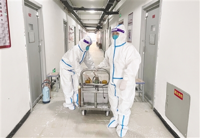 11月5日,学生党员志愿者在一处隔离点送水。内蒙古工业大学化工学院6名大四学生党员组成临时党支部,她们勇挑重担,每天送抗原试剂盒、打水送饭、发放防疫物资,充分发挥了基层党支部在疫情防控中的战斗堡垒作用和党员的先锋模范作用。本报记者 王磊 通讯员 安炜丹 摄