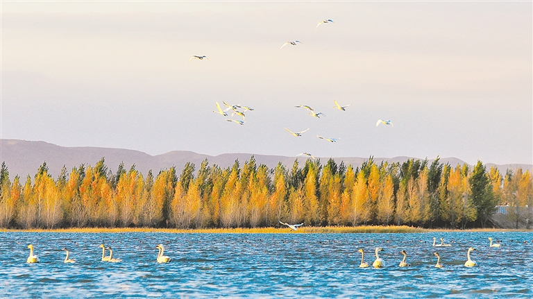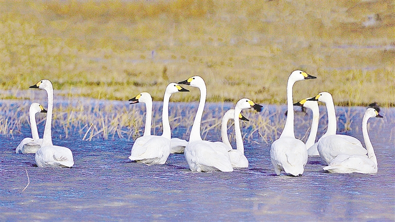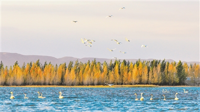 近日,随着天气日渐寒冷,位于通辽市扎鲁特旗境内的湖泊、湿地再次迎来了大批迁徙的白天鹅驻足觅食。一只只身姿优雅、体态婀娜的白天鹅悠闲游弋在水面上。有的天鹅时而扑打着翅膀,溅起阵阵涟漪,有的伸展脖颈梳理洁白的羽毛,有的展翅滑翔、轻盈踏水,有的引颈长鸣,一动一静皆成为暮秋时节最美的风景。