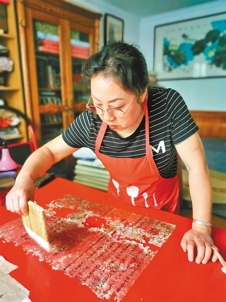现在,杨秀娟在装裱修复的同时,每天还在为培养这项中国独有的传统技艺接班人而忙碌着。