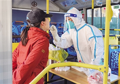 近日,工作人员在流动核酸检测点给沿街商户做核酸检测。为了做到辖区内居民核酸应检尽检,呼和浩特市新城区中山东路街道中山社区组织人员进行流动检测,做到不落一人、全员检测,助力疫情防控。