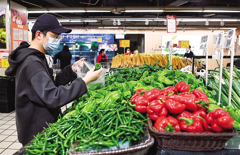 11月12日,市民在重百超市渝北中心店选购蔬菜。为全力保障疫情防控期间生活物资供应,重庆市渝北区协调相关部门、企业加大组织货源力度,增加储备供应,保障市民“米袋子”“菜篮子”。 新华社记者 王全超 摄