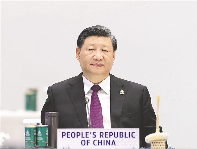 习近平强调,上个月,中国共产党第二十次全国代表大会成功举行,为当前和今后一个时期中国发展指明了方向、规划了蓝图。中国愿同所有国家在相互尊重、平等互利的基础上和平共处、共同发展。中国将坚持实施更大范围、更宽领域、更深层次对外开放,坚持走中国式现代化道路,建设更高水平开放型经济新体制,继续同世界特别是亚太分享中国发展的机遇。
