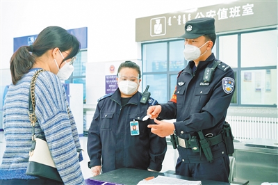 近日,包头铁路公安处民警在包头站进站口提醒旅客,禁止携带水果刀进站乘车。随着管辖内多个火车站客流出现增长,包头铁路公安处严格督促责任单位落实全覆盖安检,坚决防止各类危险品进站上车。同时加大对车站、公共聚集地、物资集中场所等地的消防监督检查。