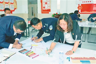 日前,鄂尔多斯出入境边防检查站与鄂尔多斯市第一中学附属小学联合开展“昂首阔步新征程,警民共建谱新篇”主题党日活动。民警与教师以小组为单位共同绘制“党的二十大报告”思维导图,结合工作实际逐一分享学习心得,进一步理解把握党的二十大精神的精髓要义。