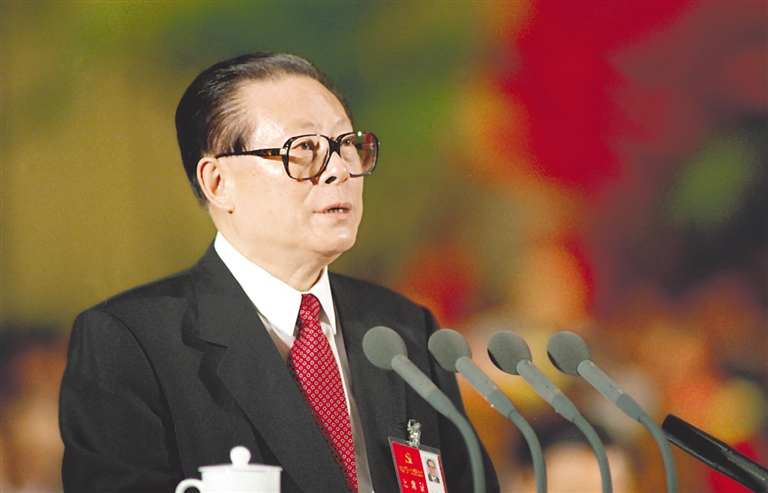 | 上图:1997年9月12日,中国共产党第十五次全国代表大会在北京人民大会堂开幕。这是江泽民同志代表第十四届中央委员会作报告。 |