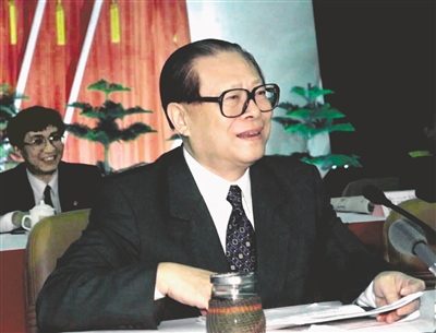 | 上图:2000年2月20日,江泽民同志在广东省高州市领导干部“三讲”教育会议上发表重要讲话。在这次广东考察中,江泽民同志提出,我们党总是代表着中国先进生产力的发展要求,代表着中国先进文化的前进方向,代表着中国最广大人民的根本利益。 |