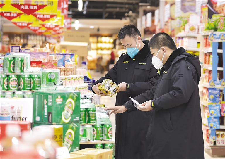 12月3日,呼和浩特市赛罕区市场监督管理局金桥开发区市场监督管理所的执法人员在辖区各大超市和药店等经营场所,对食品、蔬菜价格,药品安全等重点领域和民生商品进行检查,保障市场有序恢复。本报记者 马建荃 摄