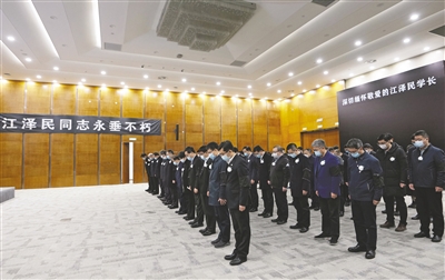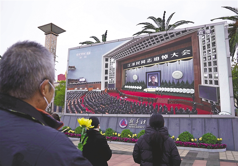 | 这是在江西南昌八一广场,群众收看江泽民同志追悼大会直播。 新华社记者 周密 摄 |