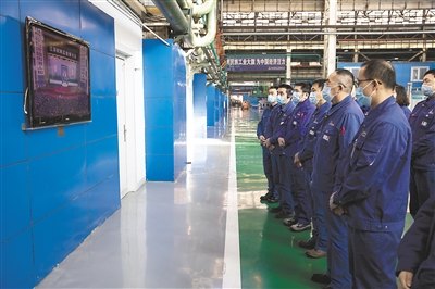 | 这是在吉林长春的一汽解放工厂车间,工人们收看江泽民同志追悼大会直播。 新华社记者 张楠 摄 |