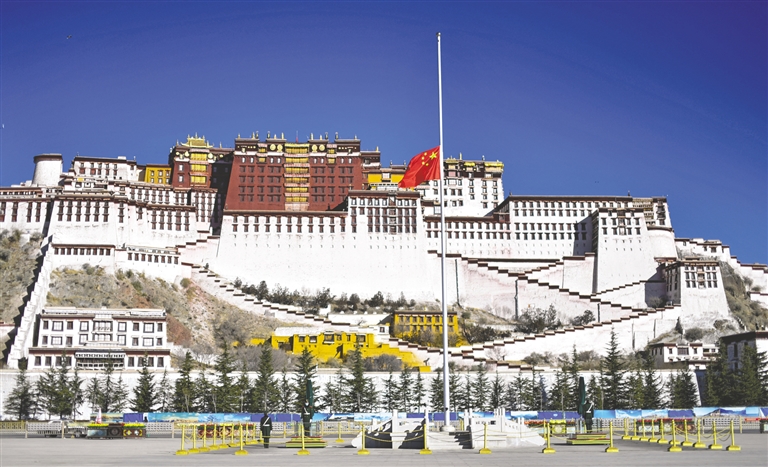 | 这是西藏拉萨布达拉宫广场下半旗志哀。 新华社记者 张汝锋 摄 |