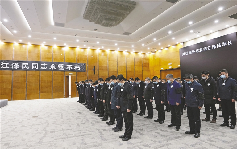 | 这是在上海交通大学,师生代表肃立默哀。 新华社记者 刘颖 摄 |
