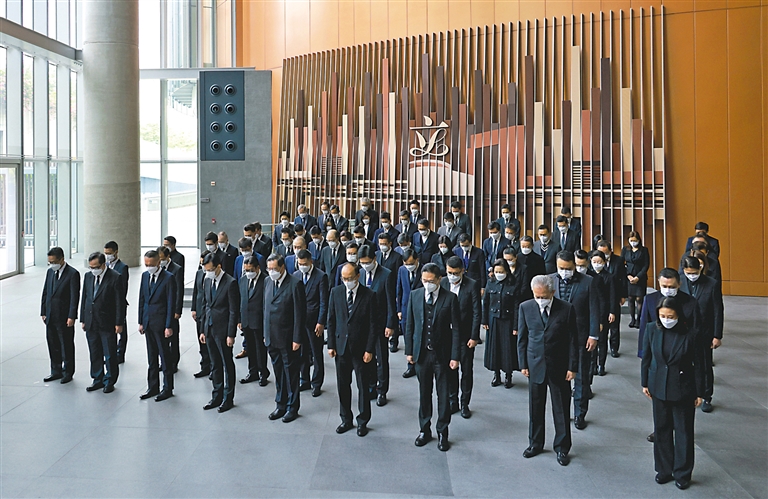 | 这是香港立法会议员肃立默哀。 新华社发 |