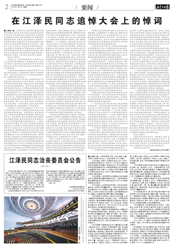 江泽民同志追悼大会在北京人民大会堂隆重举行