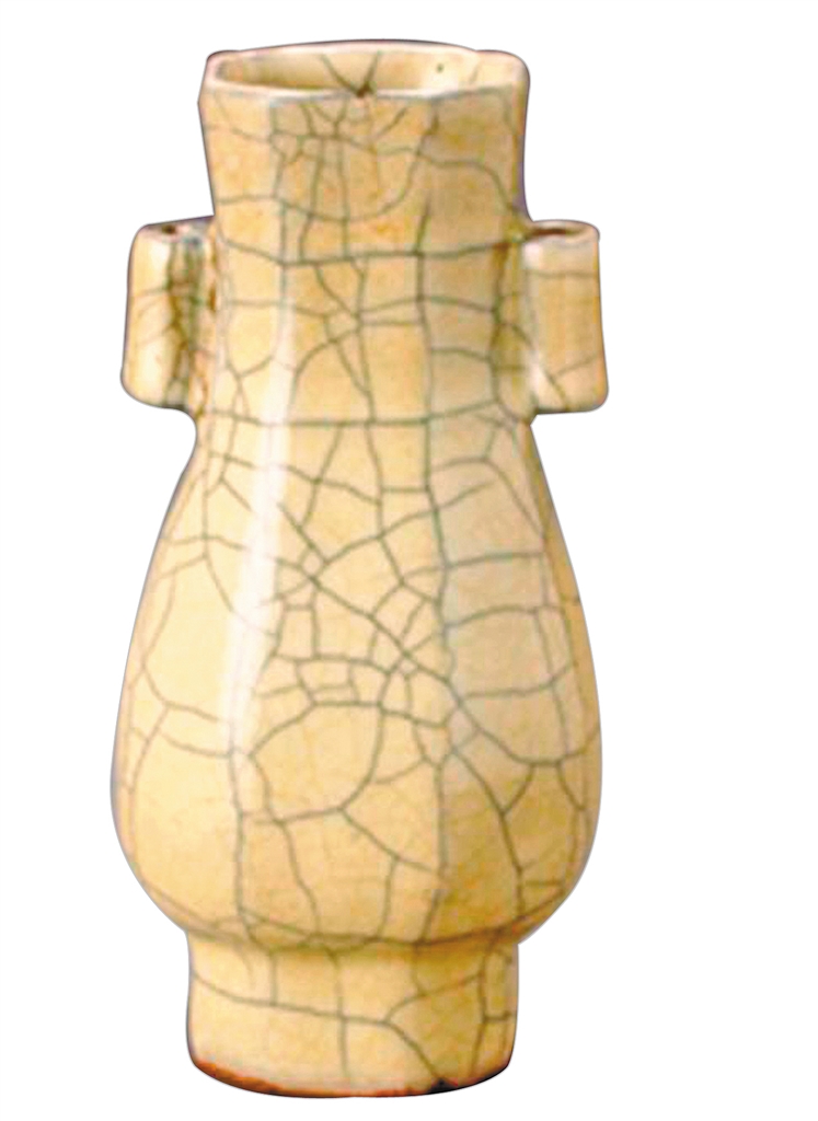 哥窑瓷器浓缩了中国传统文化的精华,大器小开片者和小器大开片者最为珍贵。文中贯耳八棱瓶上的开片大如水杯口,小如指甲盖,于点滴处细化着哥窑的传奇。