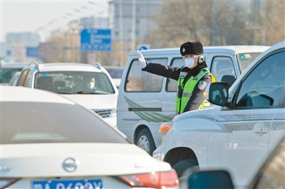 早高峰时段,在呼和浩特市新华大街,交警正在维护交通秩序。本报记者 怀特乌勒斯 摄