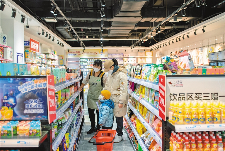 呼和浩特市各大商超陆续开门迎客,市民们在超市选购商品。本报记者 王磊 摄