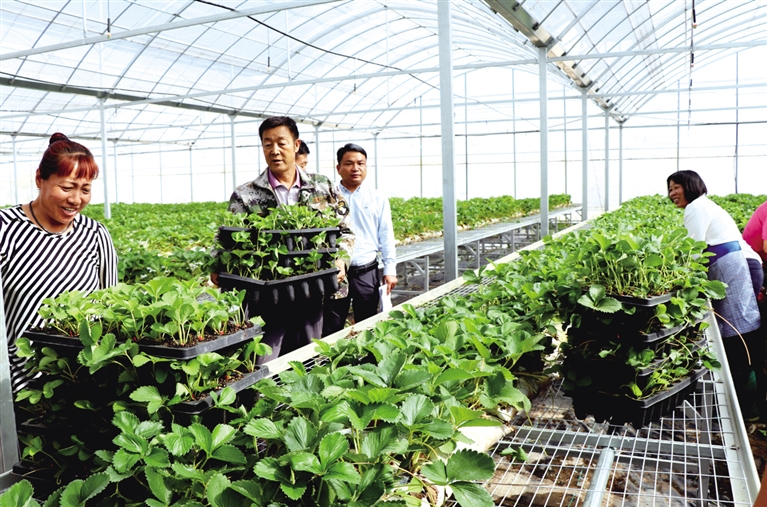 你方唱罢我登场。这边儿,玛瑙般的草莓让人垂涎欲滴;那边儿,果蔬大棚四季常青。