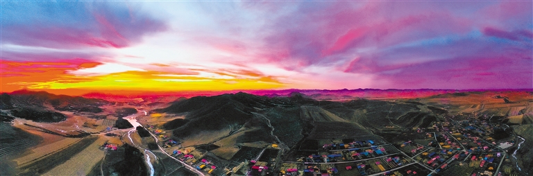 科右中旗额木庭高勒苏木甲哈达嘎查,彩霞绚烂,冰河蜿蜒,宛若丝带。 文/图 彭福玉