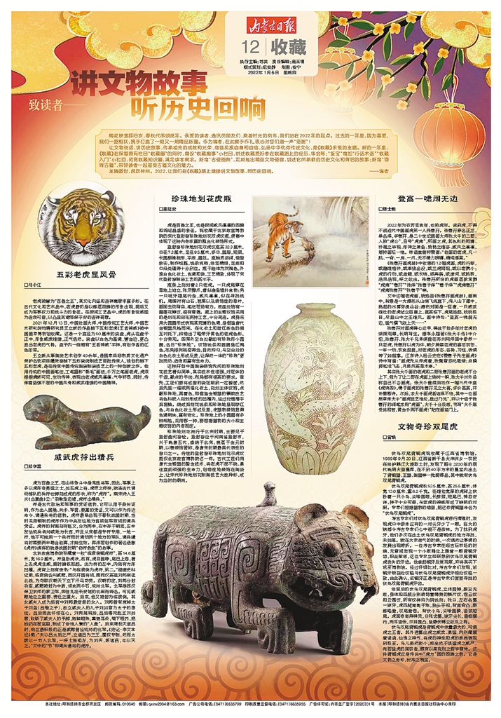 新的一年里,我依然期待你的每一期隆重登场。你哟,《内蒙古日报》“收藏”版面,我呀,一名热爱文物的传播者。我和你相遇、相知,愿在新的一年里,我们能够依然携手前行。