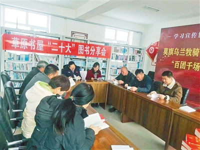 为更好发挥“草原书屋”基层文化阵地的学习和服务功能,近日,内蒙古新华发行集团组织开展了“草原书屋”学习党的二十大精神主题活动。全区各地新华书店以“草原书屋”作为活动基地,利用线上线下相结合的方式,通过专家宣讲、深读原文、学习交流、读书分享等多种形式学习宣传党的二十大精神。截至2022年12月底,在全区“草原书屋”组织开展学习党的二十大精神主题活动100余场,参与人数超过4000人次,掀起学习宣传党的二十大精神热潮。