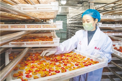 眼下,走进兴安盟科右前旗金口味食品有限公司果干生产线,经过分拣、清洗、切片、蒸煮、烘干等多个程序后,口感酸甜、色泽金黄的果干果脯被装袋打包。金口味研发的沙果系列产品自推向市场以来,以其“原生态、无污染、果肉多、无香精、无色素”的健康口味,成为了市场果脯类中的“香饽饽”,获得了全国各地消费者的好评。