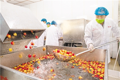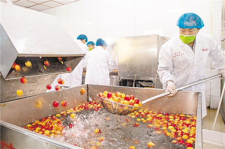 “沙果口感清脆,适宜鲜食,但储存期短,所以深加工变成它的第二个销售出口。”该公司负责人李东杰认为,林果产业要想发展,必须推动鲜果向深加工、高效益发展,拓宽产业辐射面。目前,该公司拥有林果基地1000亩,与果农流转土地1000亩,并与1200余户果农签订收购合同,今年沙果消耗量达3000吨。