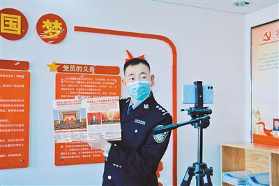 为深入学习贯彻党的二十大精神,日前,通辽市扎鲁特旗公安局政治工作办公室教育训练科积极开设线上直播培训平台,由理论知识扎实、语言表达能力强的蓝军教官担任讲师,按照警种分类对全旗994名民辅警进行为期10天的“线上直播”送教,营造了浓厚的警营学习氛围。本报记者 陈春艳 摄