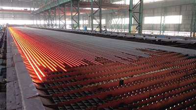 现在,乌钢的轧钢厂有两条生产线,分别生产从直径14毫米至直径25毫米的大螺纹钢和直径10毫米至直径14毫米的小螺纹钢。由于订单增多,乌钢在厂区外设置了两个火车装车点。在蒙佳钢材装车点,记者看到客户订购的直径25毫米大螺纹钢正在装车,准备发往广州。