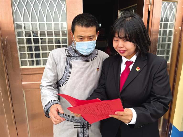 这是锡林郭勒盟太仆寺旗人民法院法官额日登其其格和书记员深入嘎查,现场调解一起家事纠纷的一幕。也是全区法院顺应民之所需,以法治之力保障人民安居乐业的缩影。