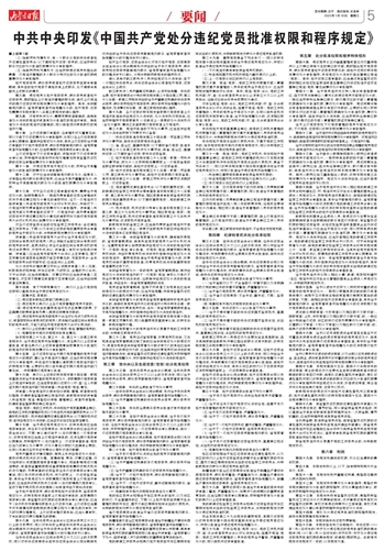 中共中央印发《中国共产党处分违纪党员批准权限和程序规定》