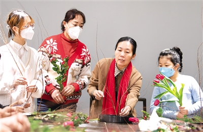 1月24日,人们在内蒙古展览馆参与传统插花制作。当日,“花漾享春”传统插花制作及“畅游九曲 祈福国泰民安”等传统文化活动在该馆启幕。