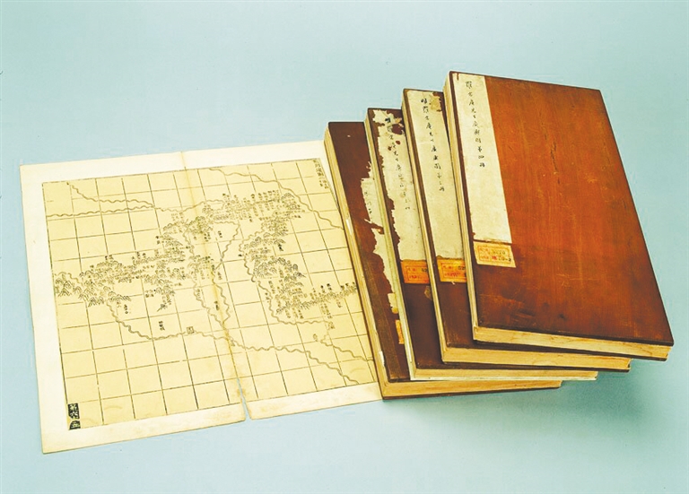 《广舆图》是中国古代第一部综合性地图集,系明代罗洪先以元代朱思本《舆地图》为基础,收集了元代李泽民的《声教广被图》,明代《大明一统图志》,许沦的《九边小图》,杨虞坡、徐斌的《水图》等14 种资料作参考,汇集增补并改编绘就的地图集。