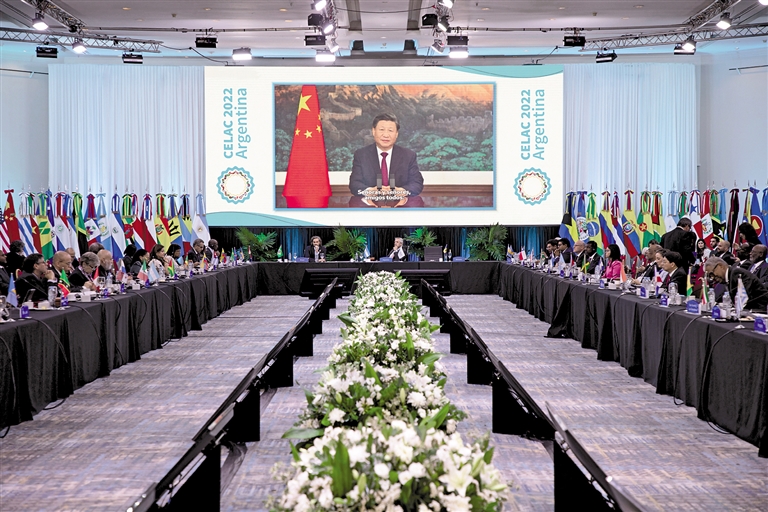 习近平强调,中方一贯支持拉美和加勒比地区一体化进程,高度重视发展同拉共体关系,将拉共体视为巩固发展中国家团结、推动南南合作的重要伙伴。正是本着这样的初心,中方同拉方一道,不断加强中拉论坛建设,推动中拉关系进入平等、互利、创新、开放、惠民的新时代。越来越多的地区国家同中国合作推进高质量共建“一带一路”,支持并参与全球发展倡议和全球安全倡议,同中方携手构建中拉命运共同体。